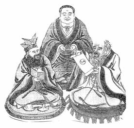 – zľava doprava – Konfucius, Budha a Lao-c’.