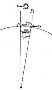 výšky Slnka v Asuáne a Alexandrii.